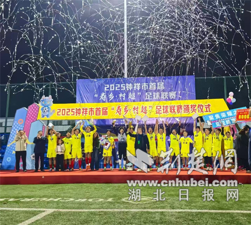 荆楚网(湖北日报)(通讯员 王龙 石刘 卢宇佳)11月5日,以“寿祥路,人民体力”为主题的2025年钟祥市首届足球联赛“寿祥村超级联赛”闭幕式在钟祥体育中心举行。超过2000名嘉宾、运动员、公众代表和记者出席了闭幕式。