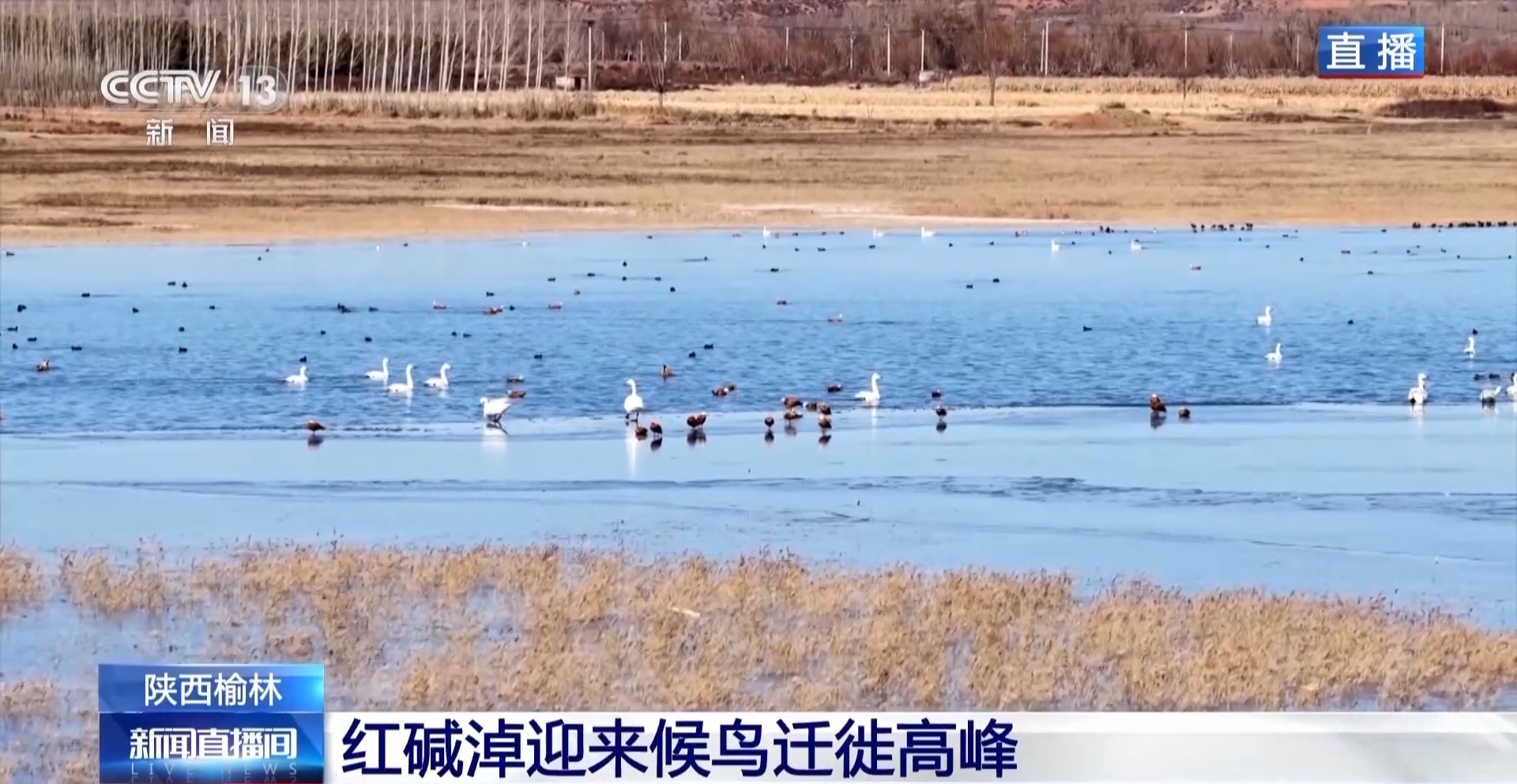 红碱枝位于陕西省和内蒙古自治区交界处,是我国最大的内陆沙漠淡水湖,在涵养水源、调节气候、维护生物多样性等方面发挥着不可替代的作用。目前,正值红尖坳候鸟迁徙高峰期,也是科研人员开展研究活动的重要时期。